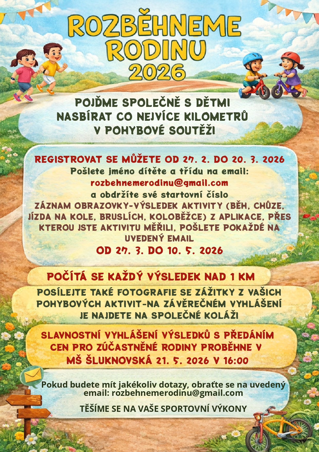 Zase po roce zveme malé i velké sportovce k účasti na sportovním programu "Rozběhneme rodinu".